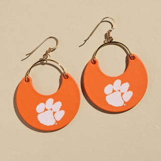 Get ready for gameday with our Clemson University Paw Print Nina leather earrings. This spirited earring is officially licensed and perfect for showing off your team pride. Our earrings are crafted and hand-embossed in Kansas City from premium Italian leather for a standout look.