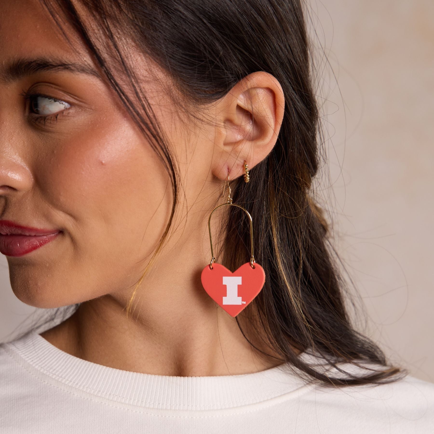 Upgrade your gameday style with our University of Illinois Heartthrob leather earrings. These officially licensed earrings are crafted and hand-embossed in Kansas City from premium Italian leather for a standout look.