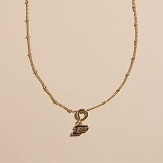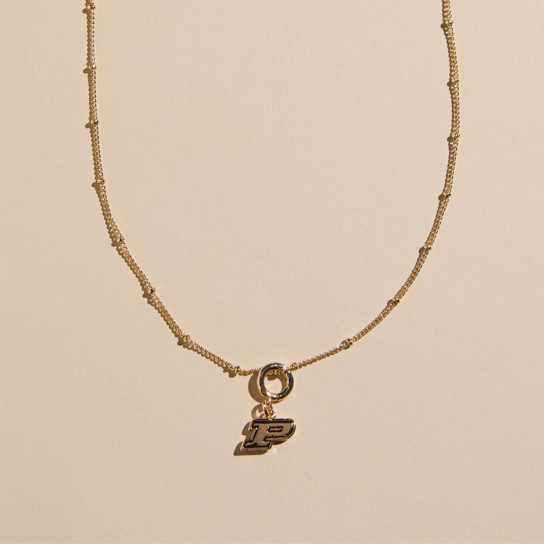 The Purdue University Charm Necklace features our officially licensed Purdue University charm on our Saturn Chain Necklace for a customized gameday look. Perfect for showing your Purdue pride, this necklace can be worn on its own or layered for a personalized gameday look.