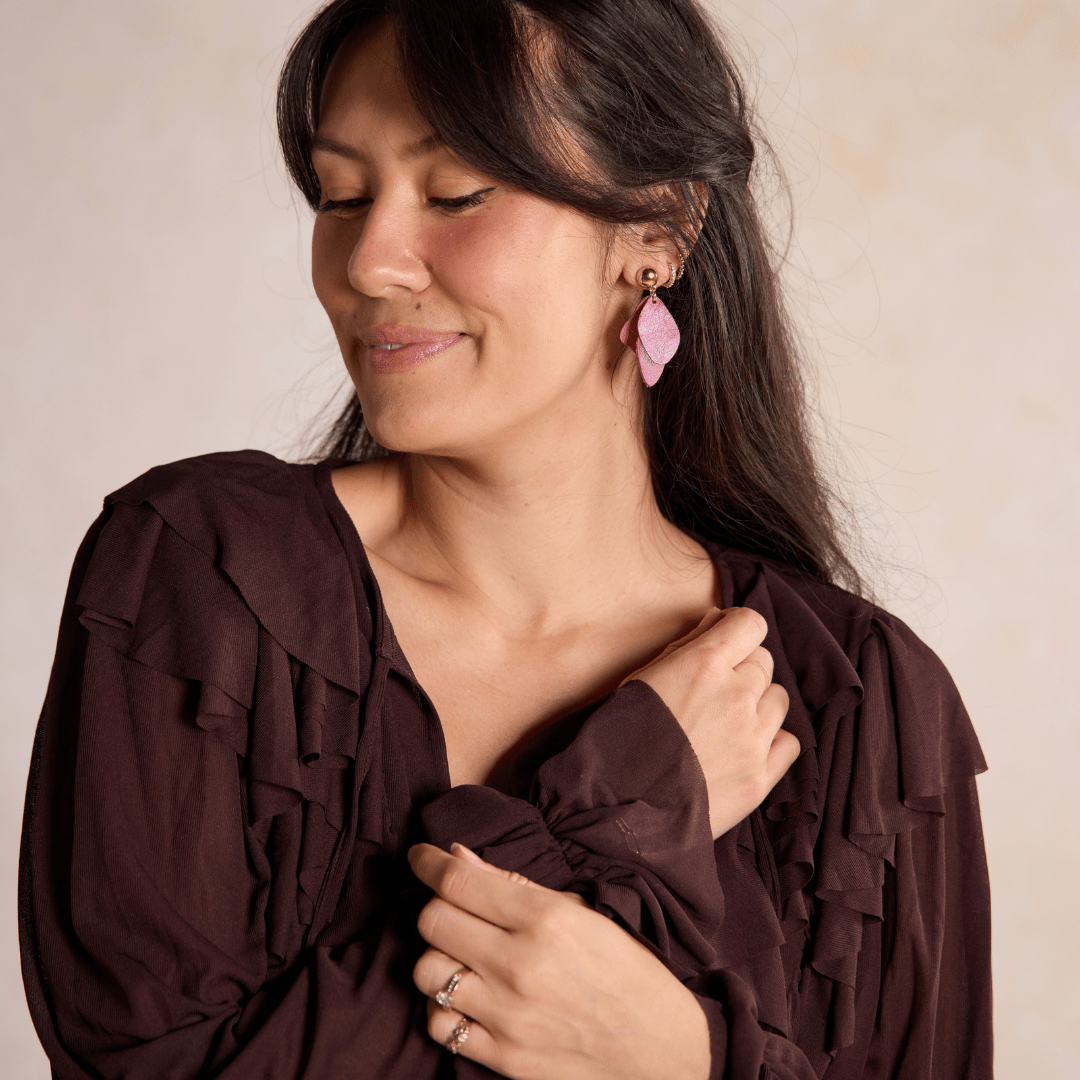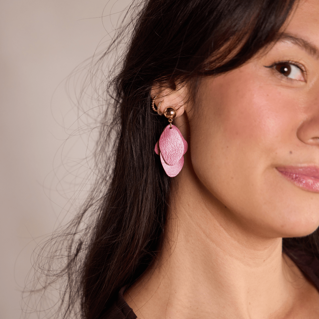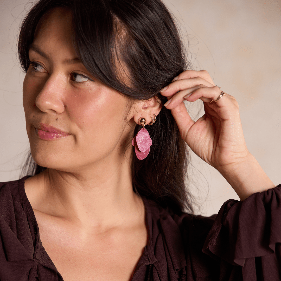 The Weston, crafted with our rich Rosebud leather are the season's favorite accessory. These statement stud earrings are a one-of-a-kind, free-flowing leather earring, with subtle movement and lightweight design.