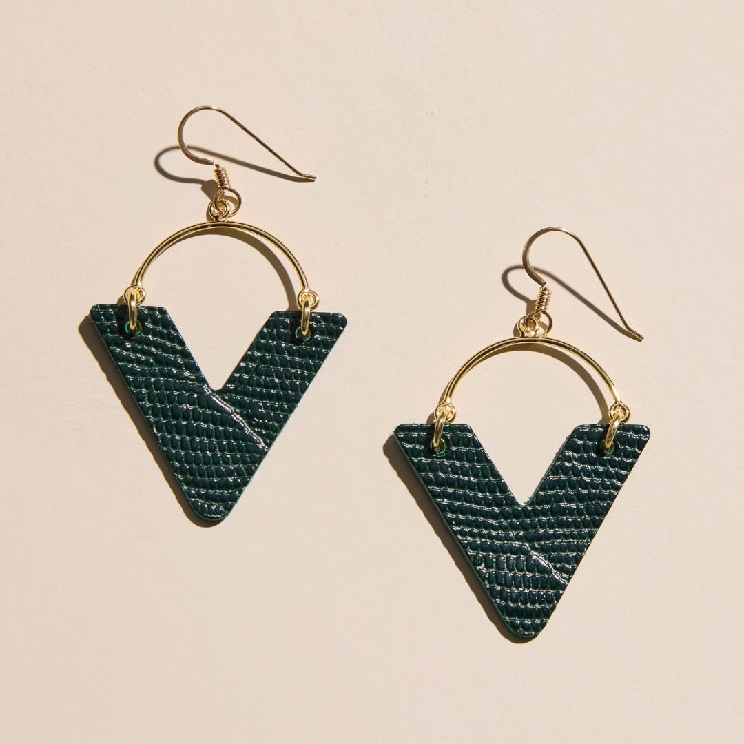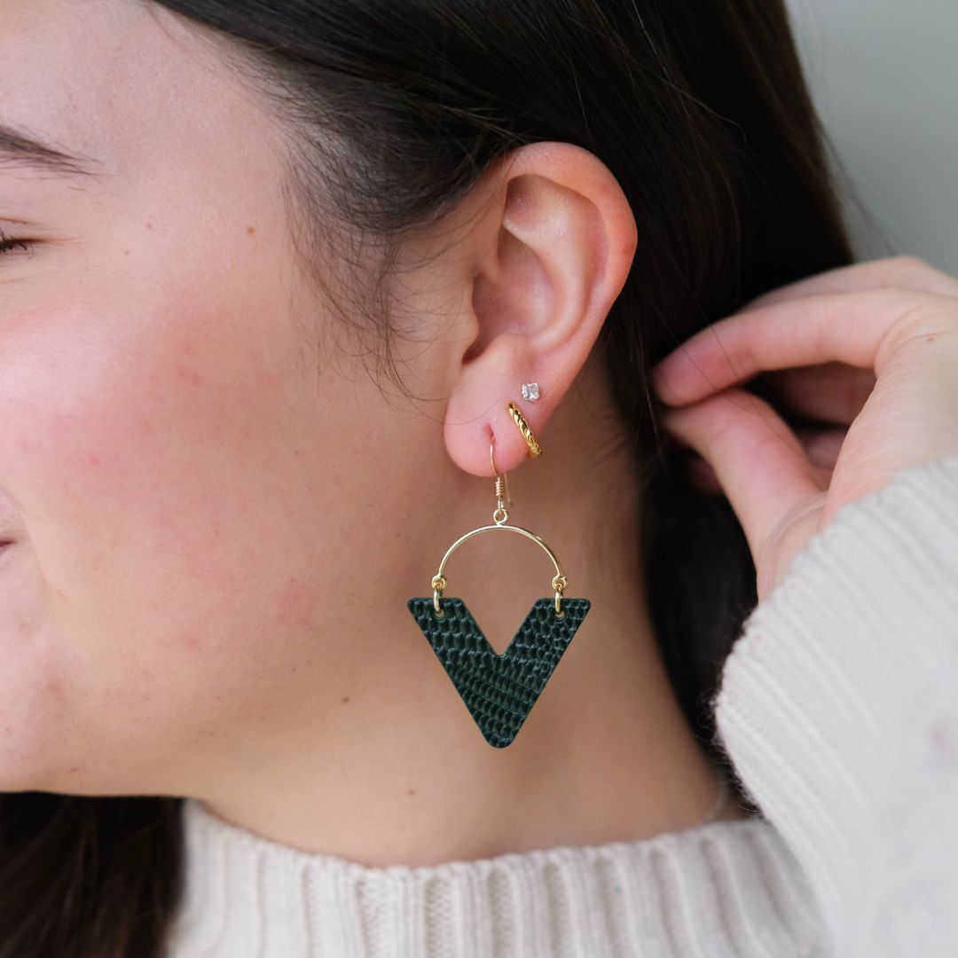 The Sutton is a lightweight geometric statement leather earring. Our Serrano Sutton is crafted from rich Serrano leather with subtle texture, perfect for everyday wear.