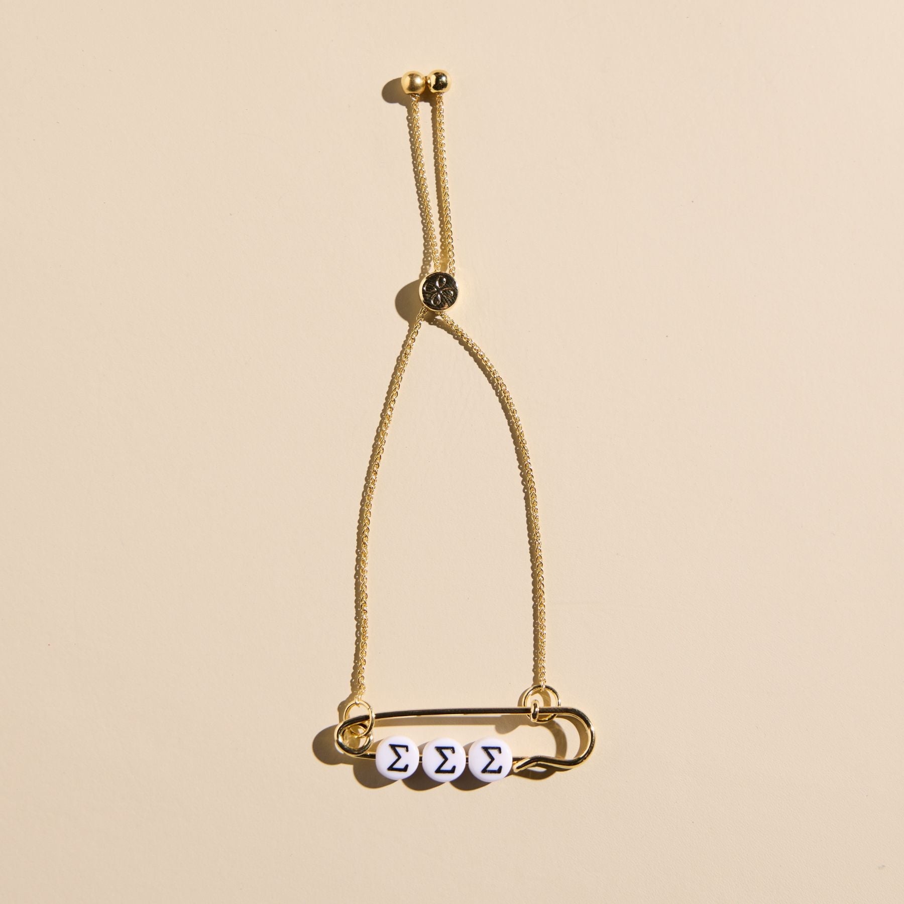 The officially licensed Sorority Safety Pin Bolo Bracelet is the perfect piece to represent your sisterhood in style. This one-of-a-kind bracelet combines our best-selling safety pin silhouette with your Greek letters.