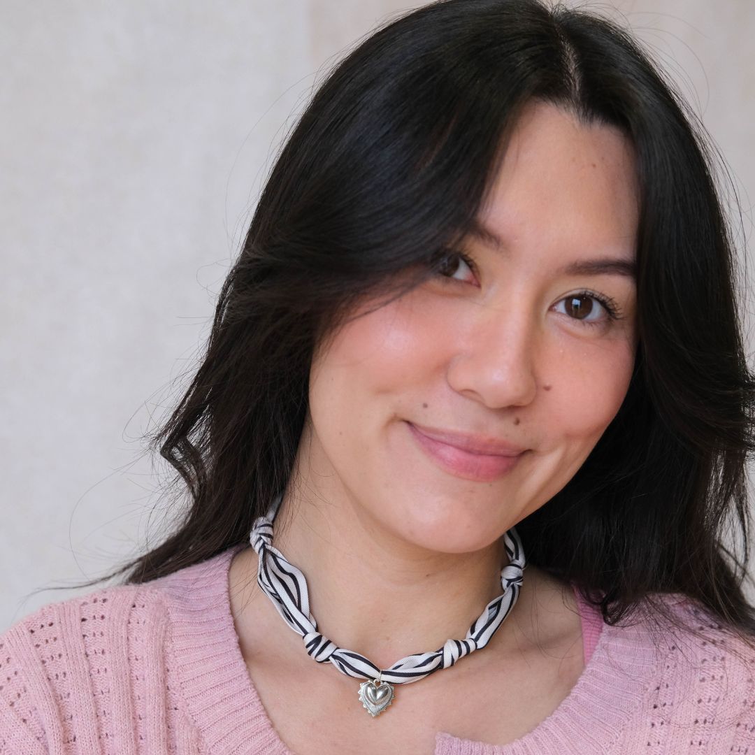 Add an eclectic accent to your look with this bandana charm necklace, featuring a satin tied scarf necklace, finished with a silver radiant heart charm attached.