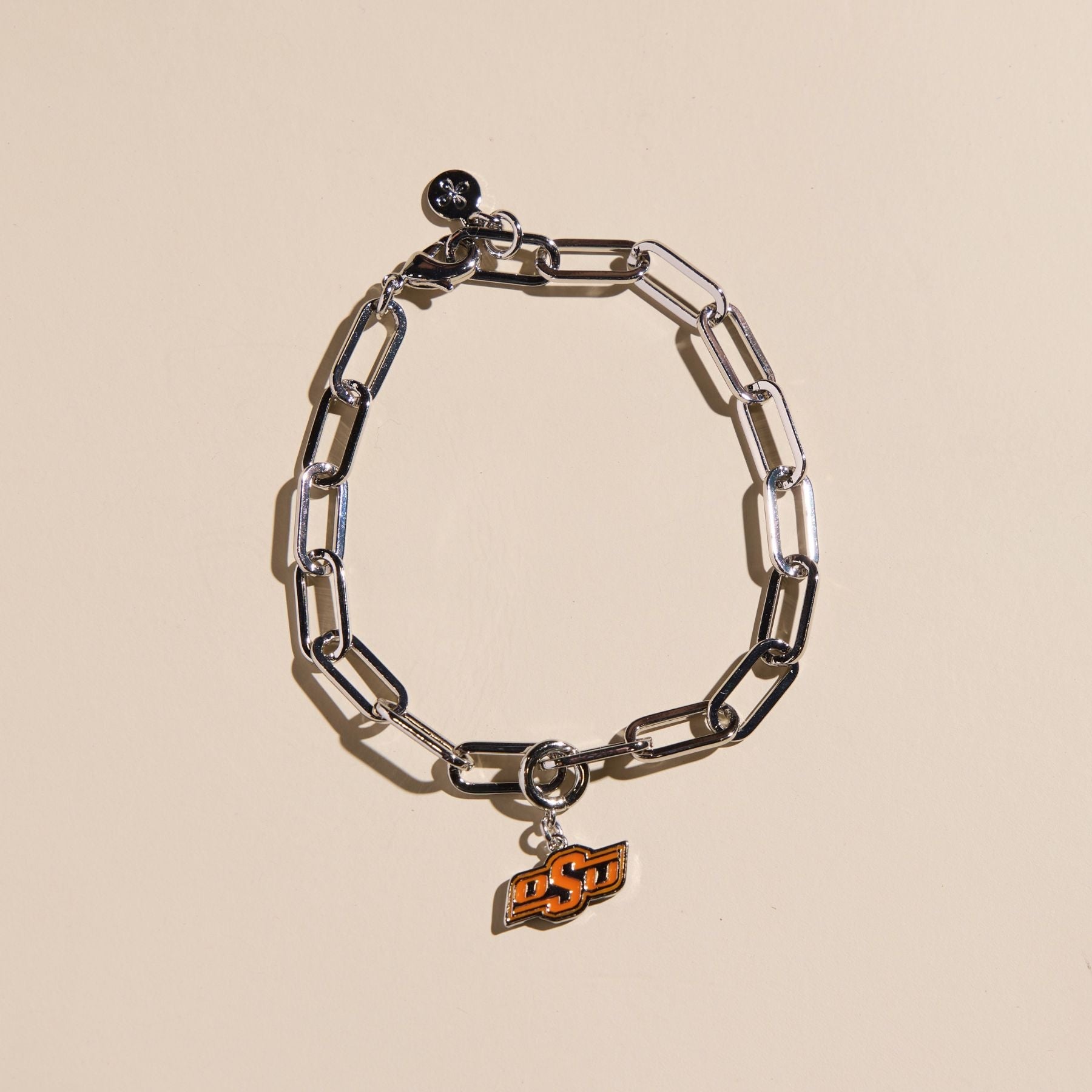 The Oklahoma State University Charm Bracelet features our best-selling Paper Clip Chain Bracelet with our officially licensed OSU charm for a customized gameday look. Keep it minimal or add a personalized touch with more clippable charms. *OSU charm is included