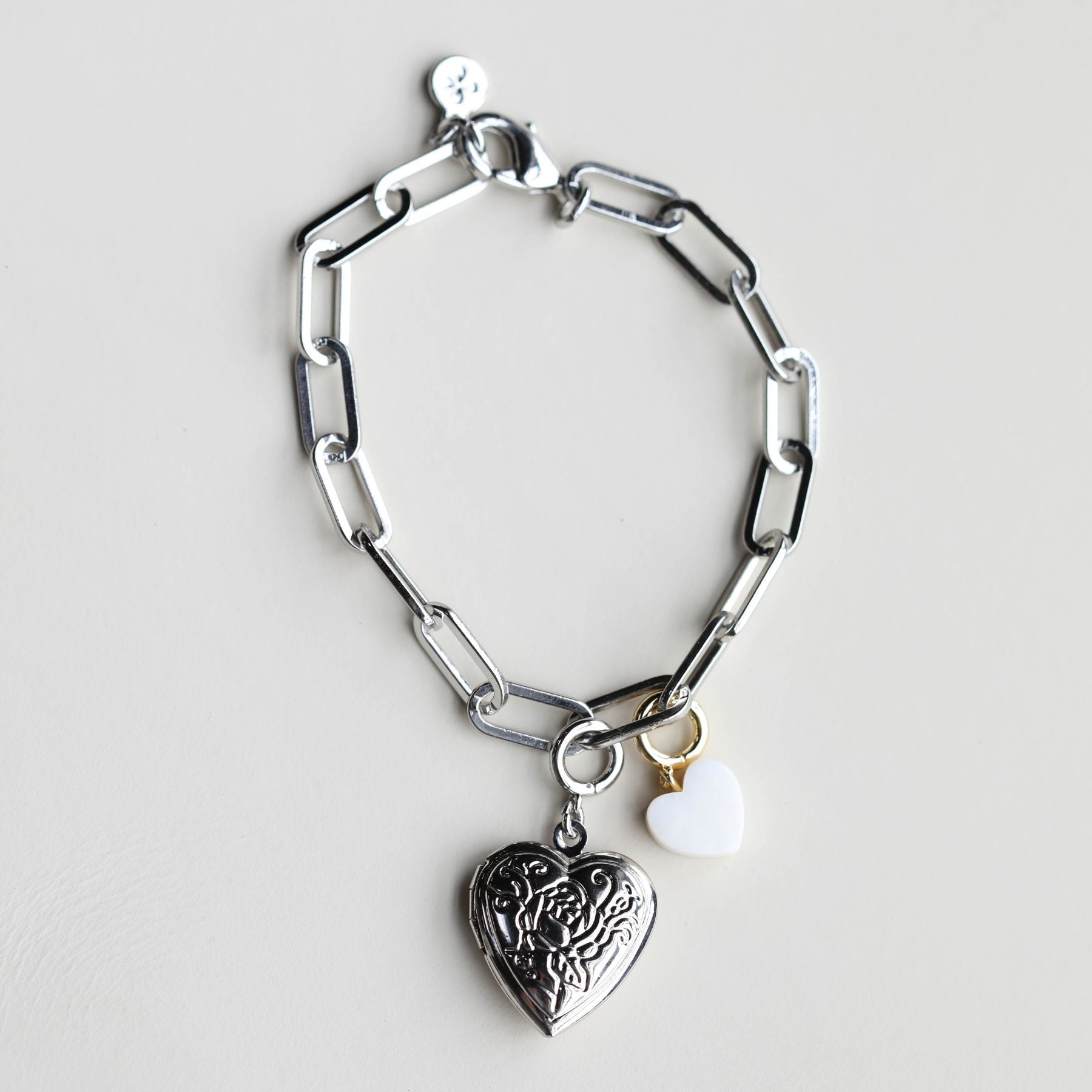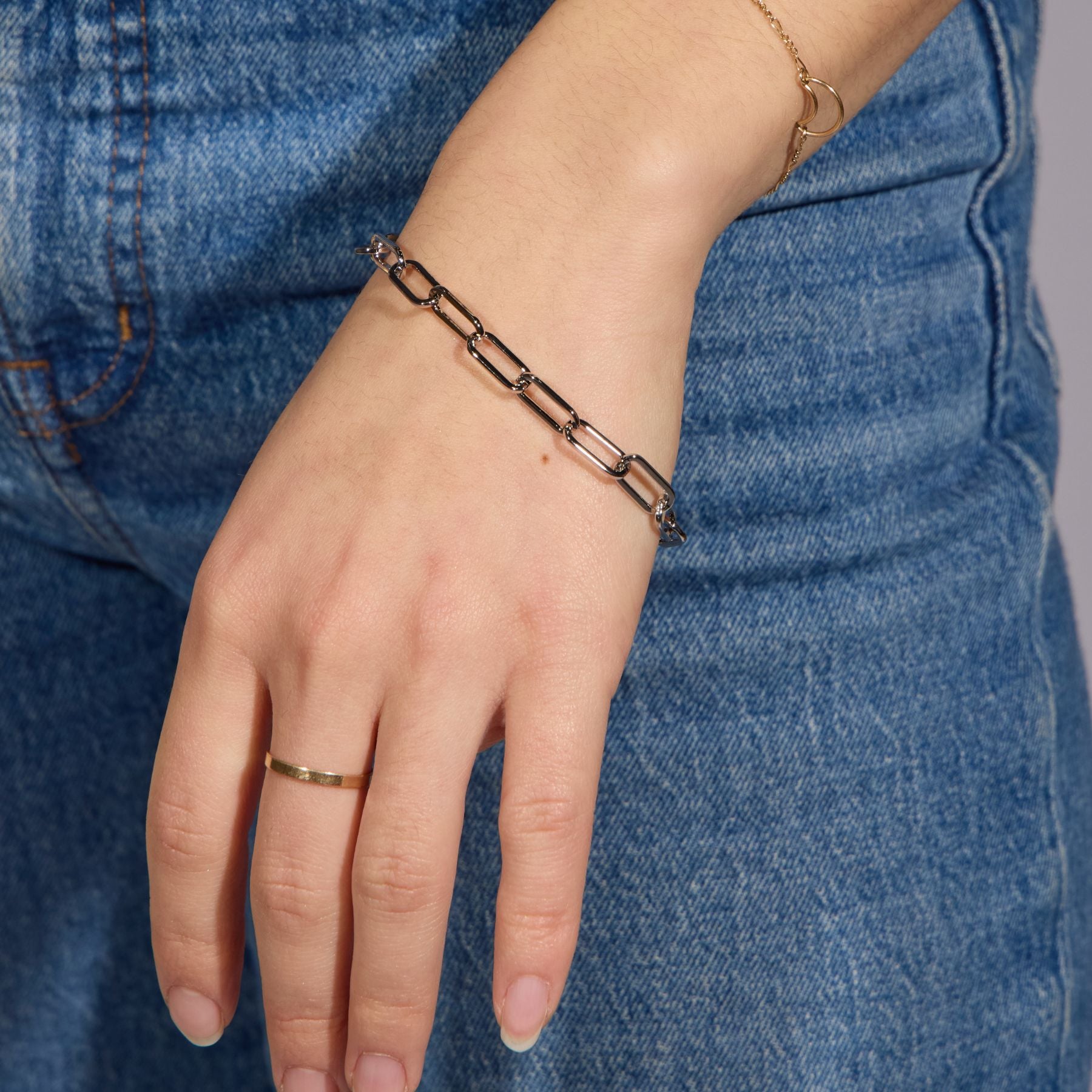 Our Paper Clip Chain Bracelet is the perfect dainty bracelet to customize. Wear alone for a minimal and elegant look or add a custom touch with our clippable 14k gold and rhodium charms.