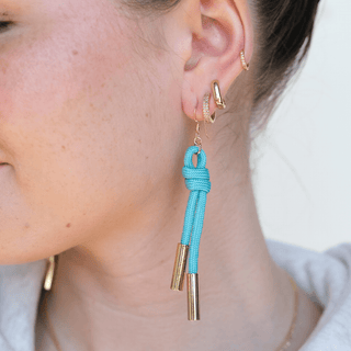 Take your accessory game to new heights with the Denver Cord Earrings, a lightweight statement earring crafted from nylon paracord on 14k gold filled or rhodium-plated sterling silver hooks. Make this one-of-a-kind style your travel partner, gameday go-to, and more.