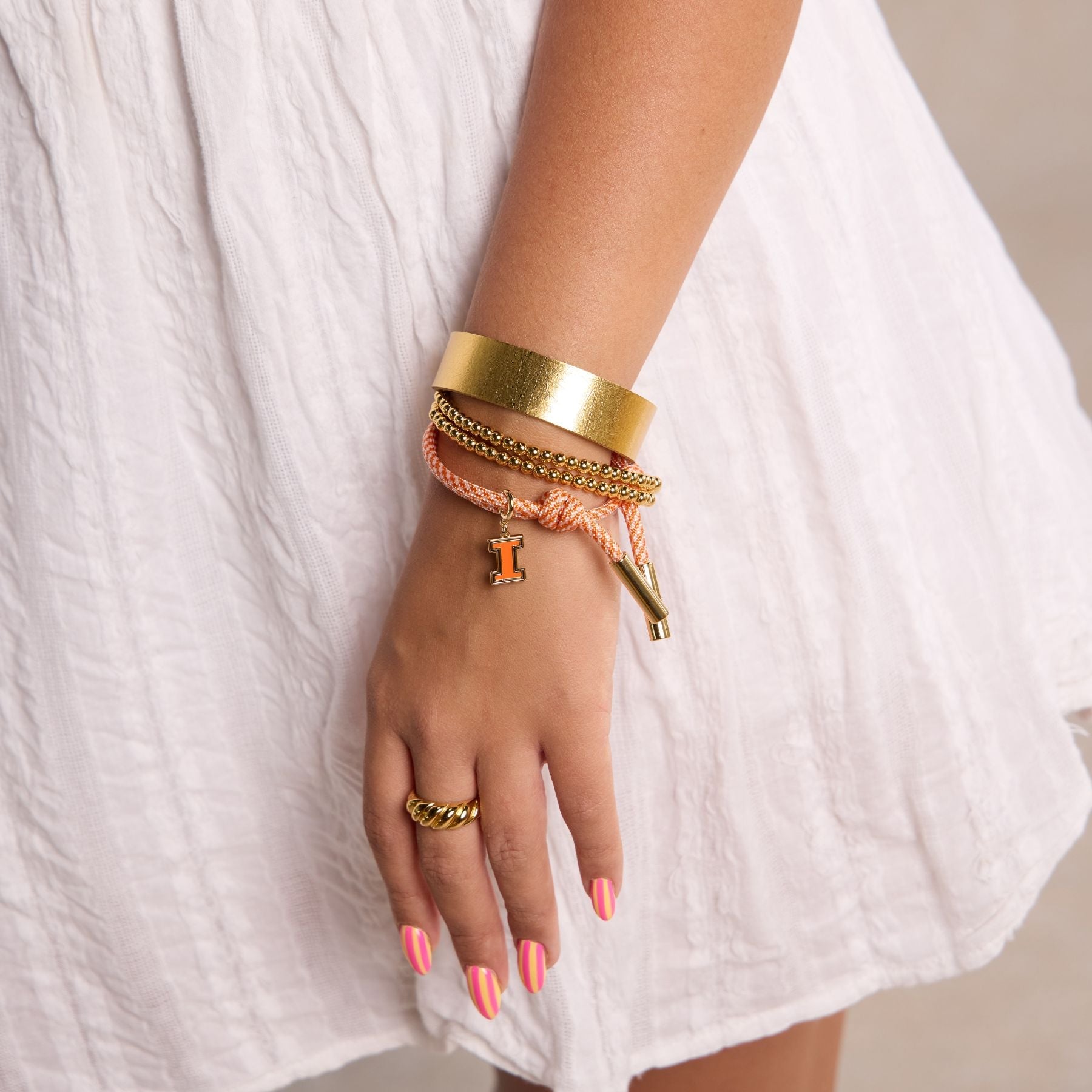 Add a nod of your favorite team to any bracelet, necklace or earring with the University of Illinois Enamel Charm. This officially licensed charm is 14k gold-plated and can be clipped onto your favorite jewelry with its simple hinged clasp.
