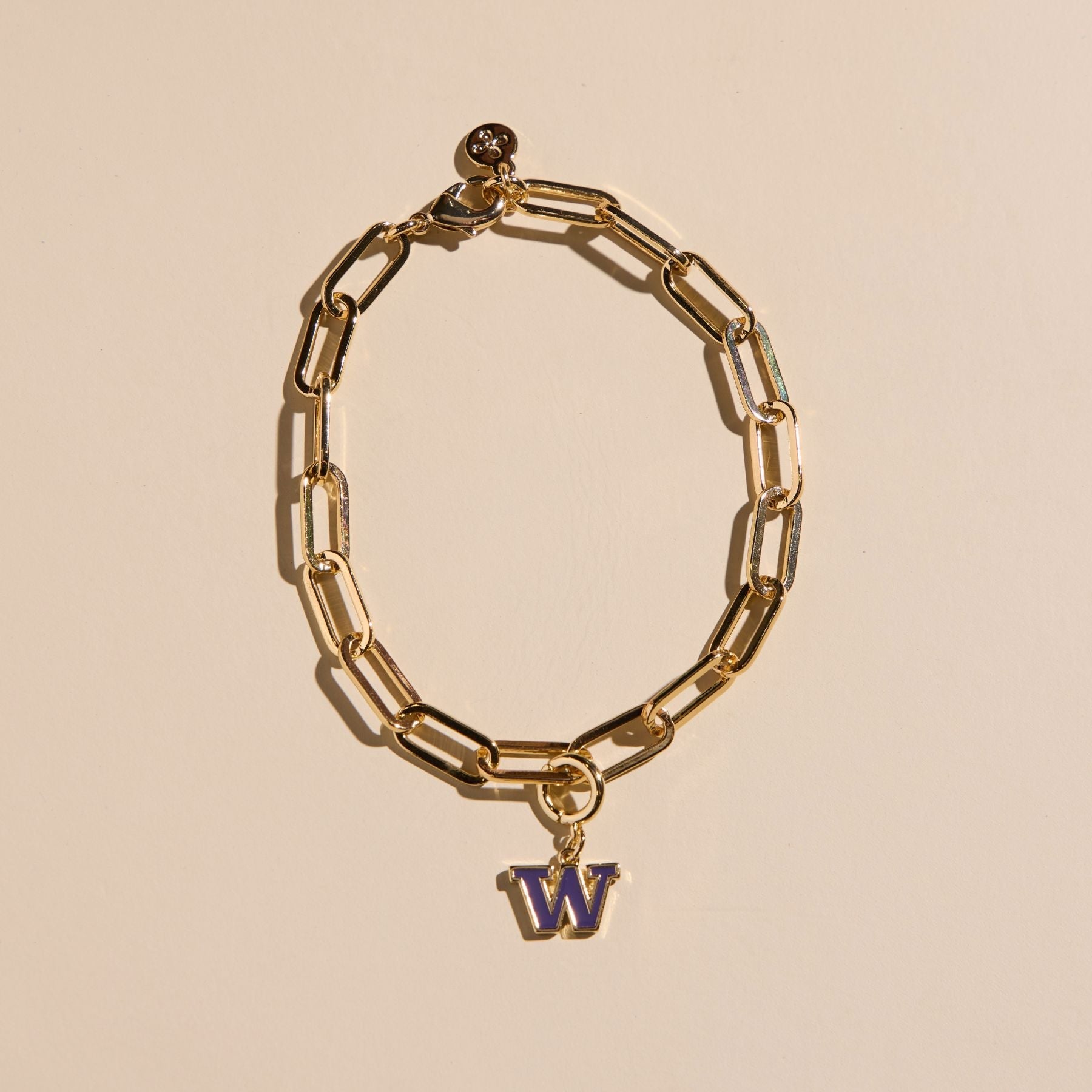The University of Washington Charm Bracelet features our best-selling Paper Clip Chain Bracelet with our officially licensed University of Washington charm for a customized gameday look. Keep it minimal or add a personalized touch with more 14k gold clippable charms. *University of Washington charm is included