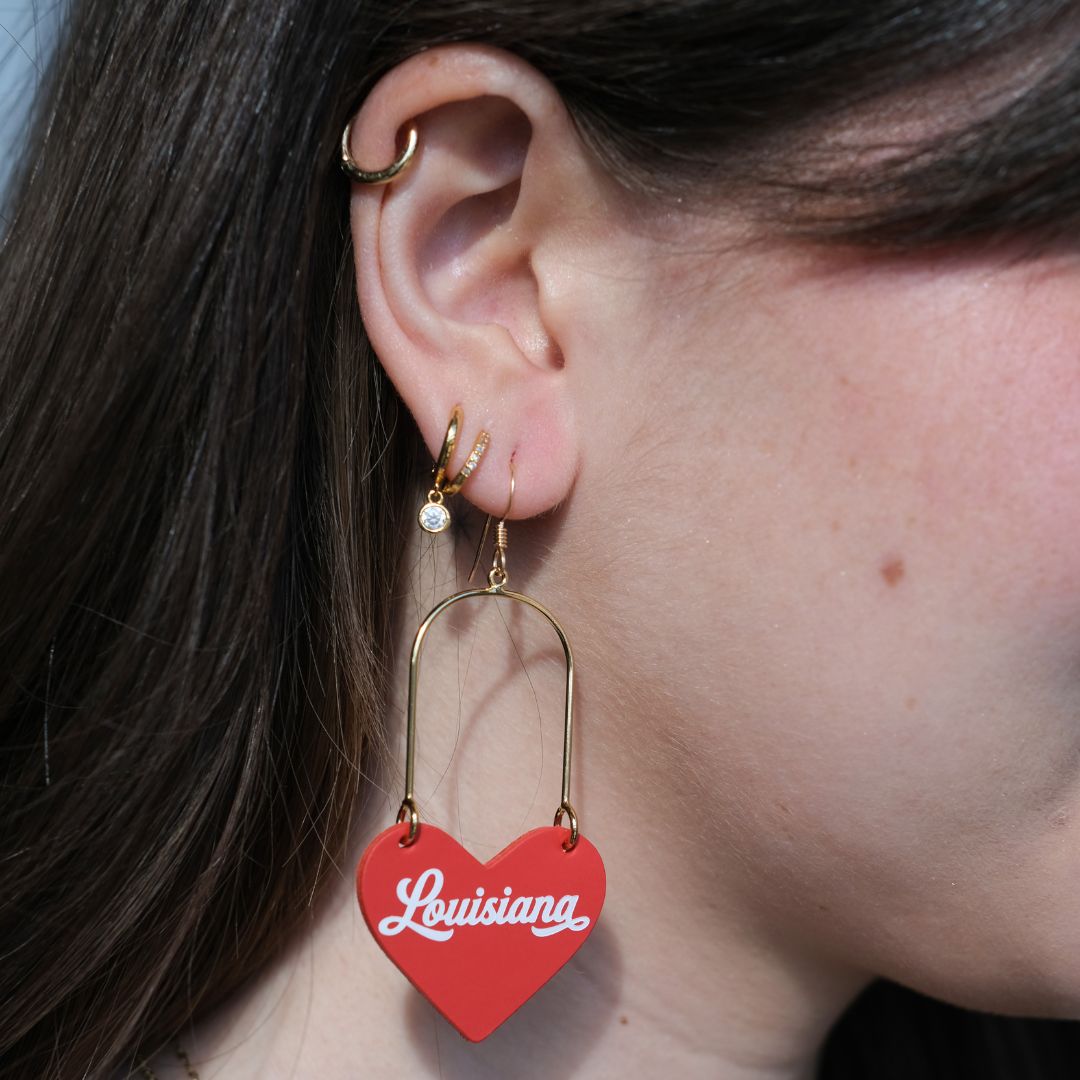 Upgrade your gameday style with our University of Louisiana at Lafayette Heartthrob leather earrings. These officially licensed earrings are crafted and hand-embossed in Kansas City from premium Italian leather for a standout look.
