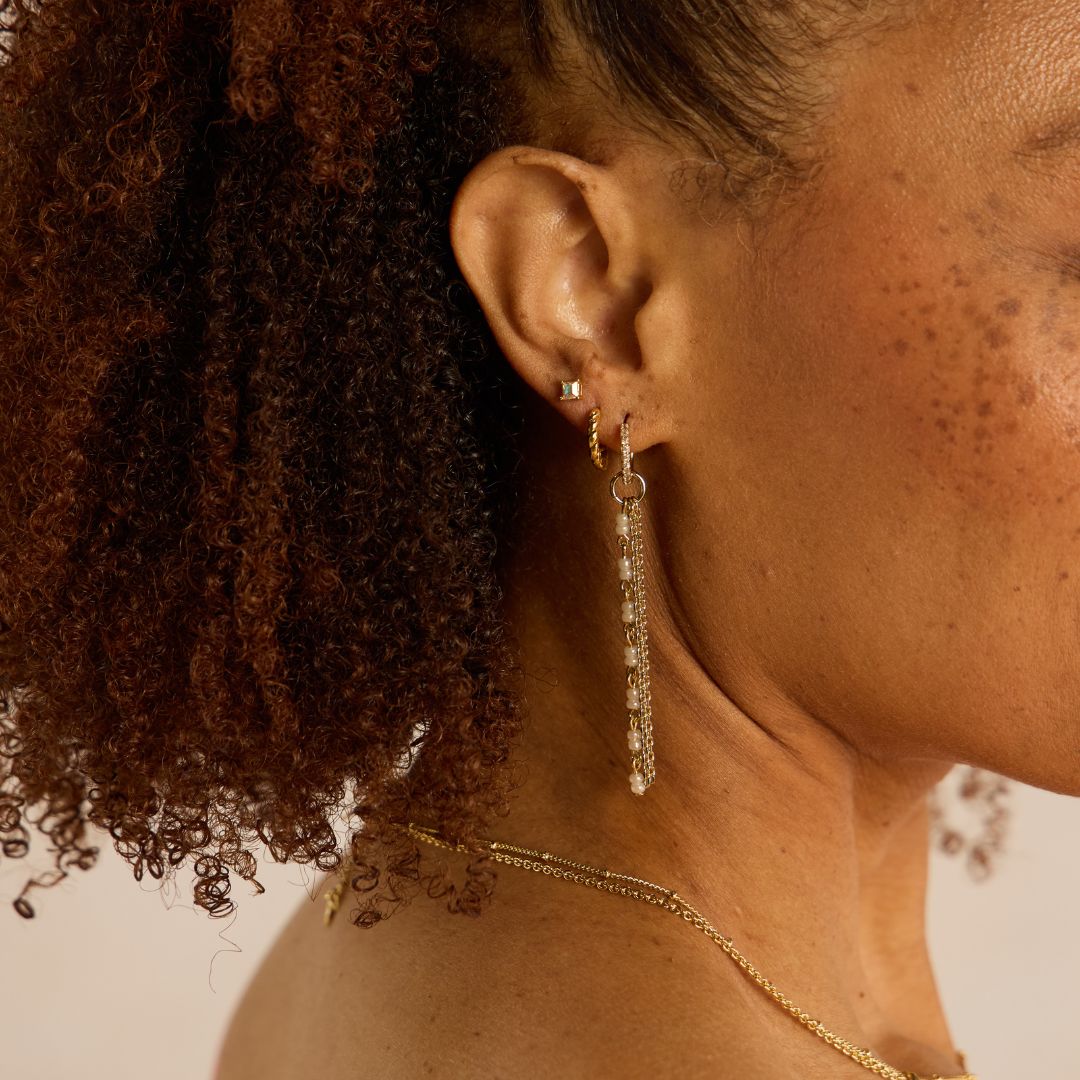 Safety Pin Necklace, Pearl Chain Huggie with Cuff & Thea Chain Huggies