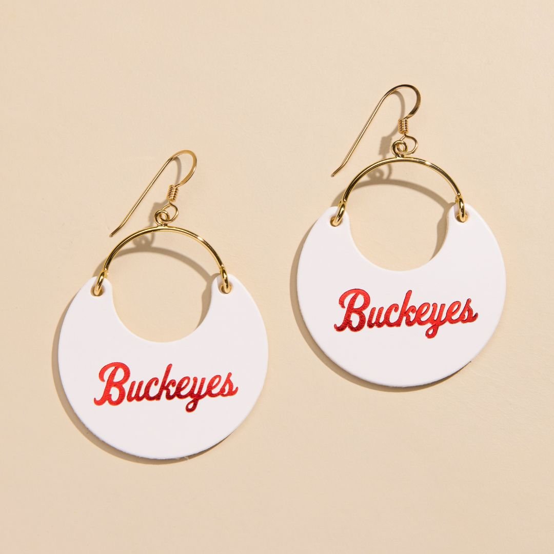 Get ready for gameday with our White Ohio State University Buckeyes Nina leather earrings. This spirited earring is officially licensed and perfect for showing off your team pride. Our earrings are crafted and hand-embossed in Kansas City from premium Italian leather for a standout look.