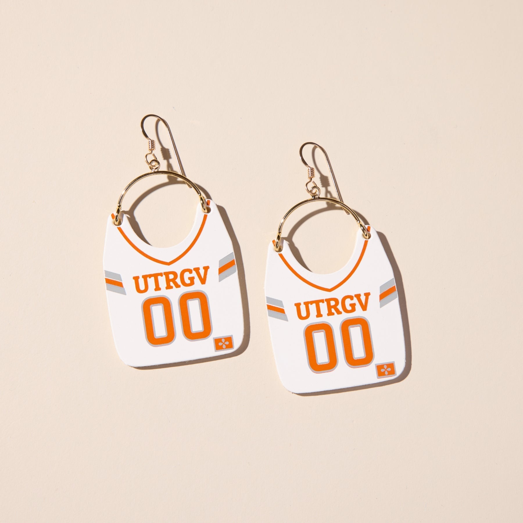 Elevate your game day look with our White UTRGV Football Jersey earrings. A cute and chic game day earring that's perfect for showing off your team spirit in style.