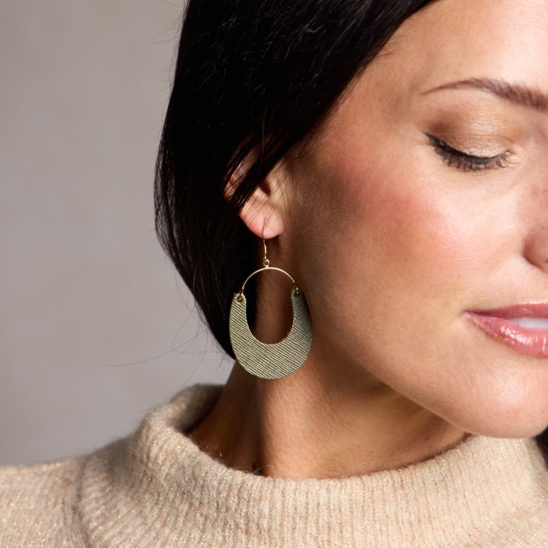 Make a statement with the Winter Moss Nadia, made with Green Fatigue leather with your choice of gold or silver hardware. These modern, lightweight earrings elevate any outfit.
